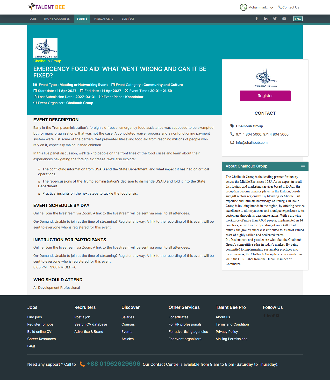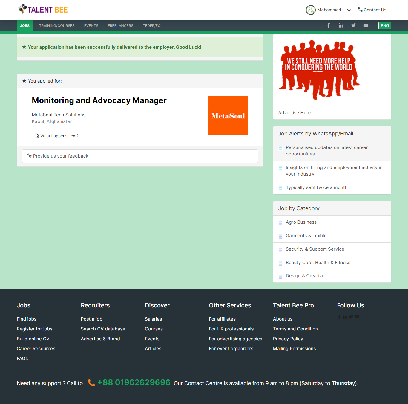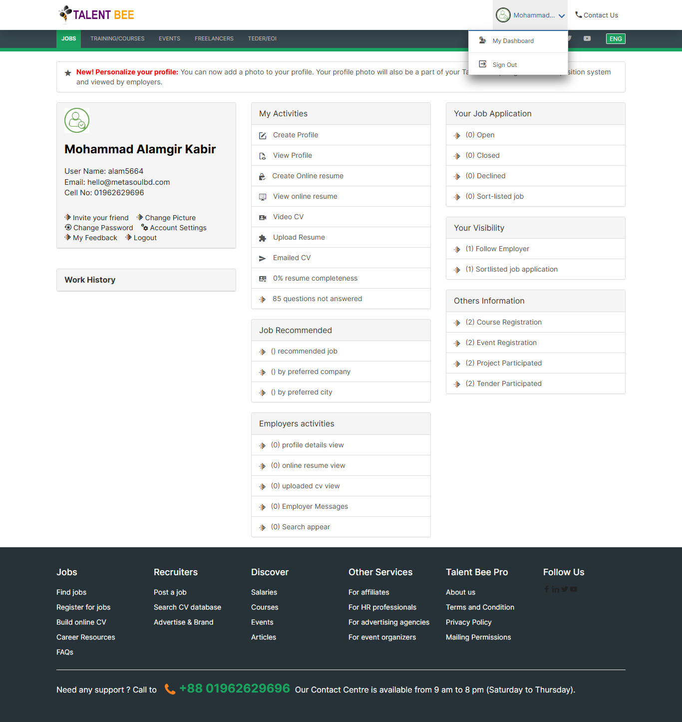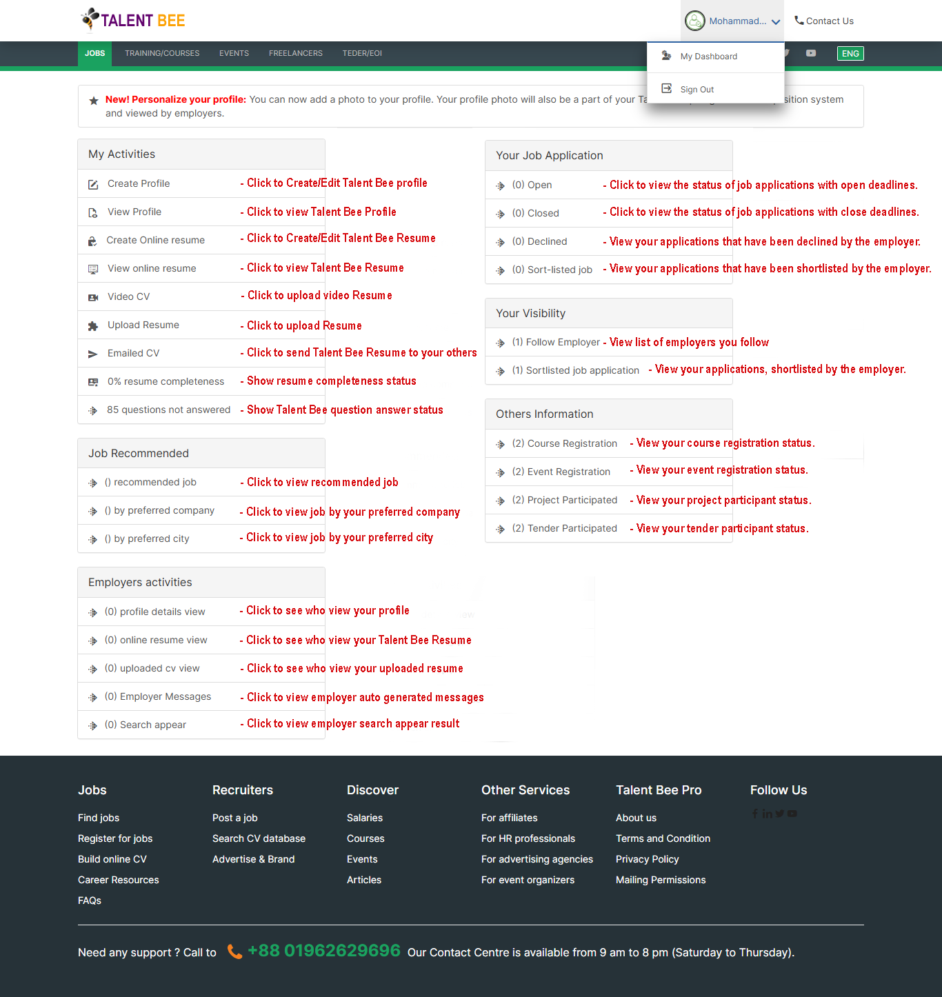 Once login the seeker able to work on his dashboard, and apply for job, course, event and so on.