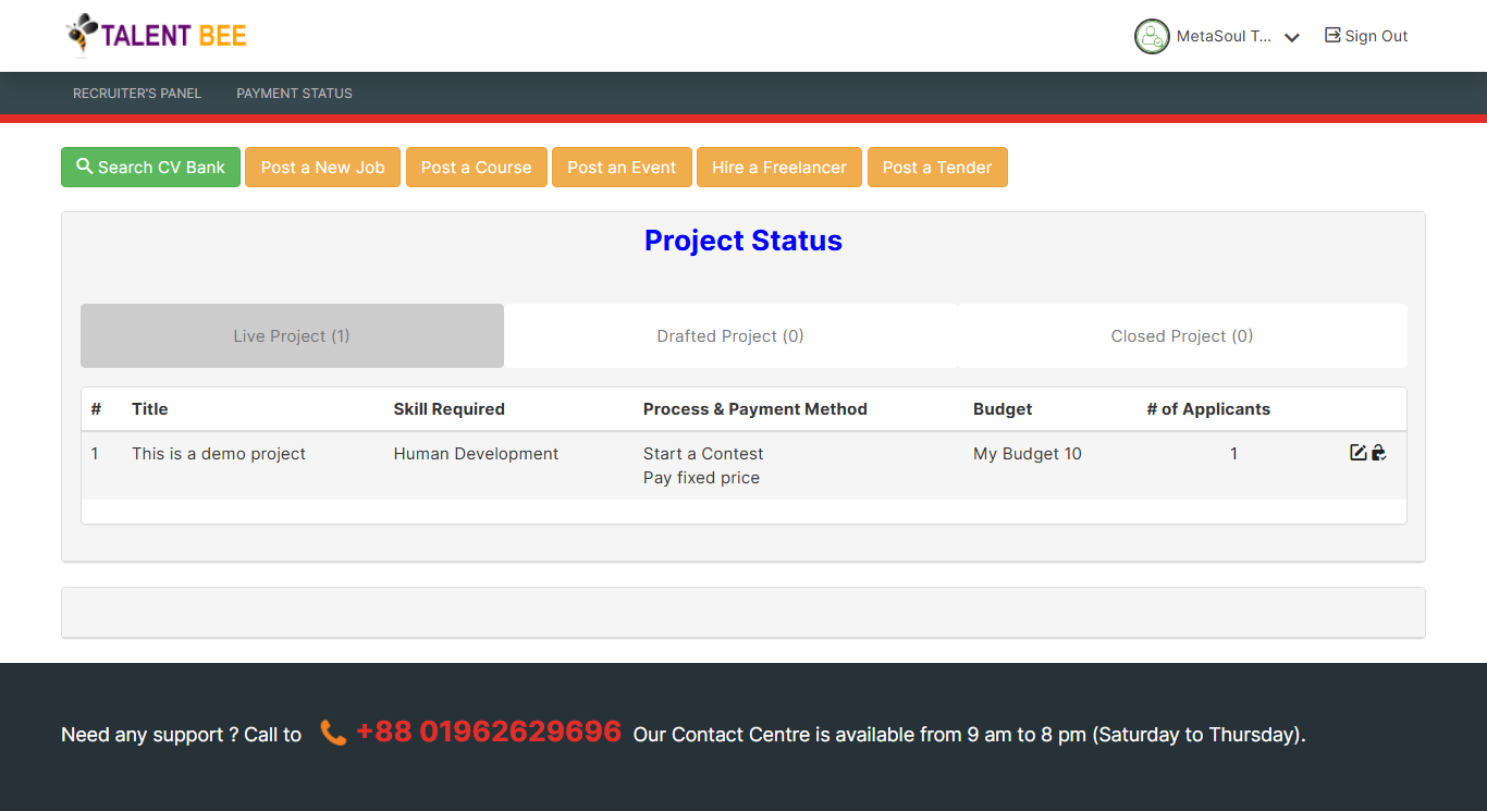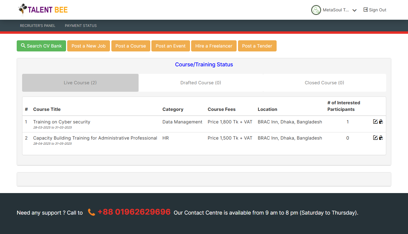 The Payment Procedure and Status Check on the Talent Bee platform are designed to ensure a seamless transaction experience for recruiters posting job listings, events, courses, projects, and tenders. Here's a brief overview of the process: