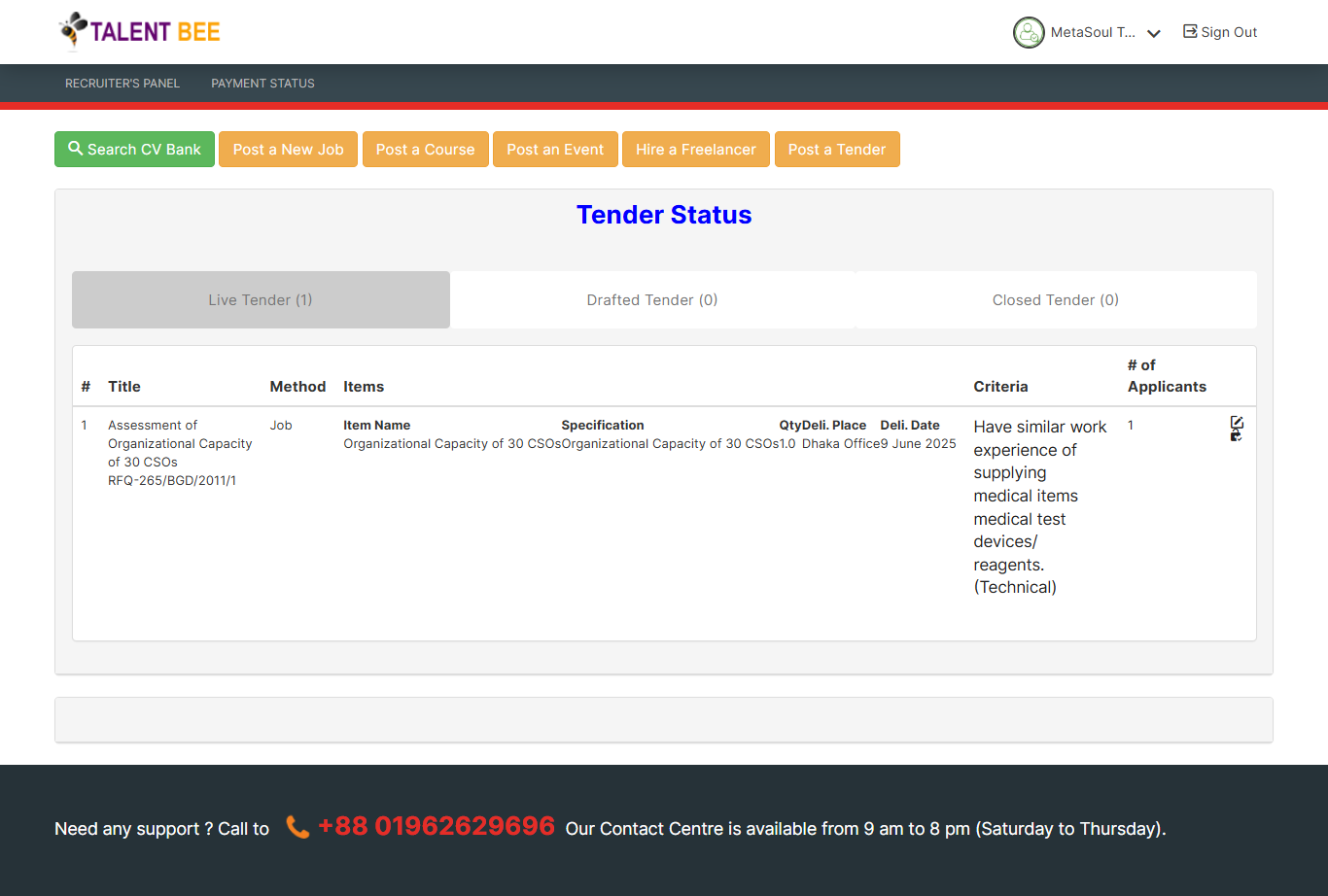 By using Talent Bee’s platform, recruiters can easily evaluate and select the most suitable seeker for their tender, ensuring the project is completed with the right expertise and on time.